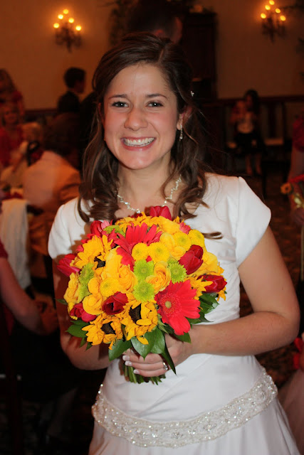 I loved the colors in her bouquet. It was beautiful. I liked it so much that before I wrapped it to give it to her I took some cool pictures with the stems just left all-natural!
